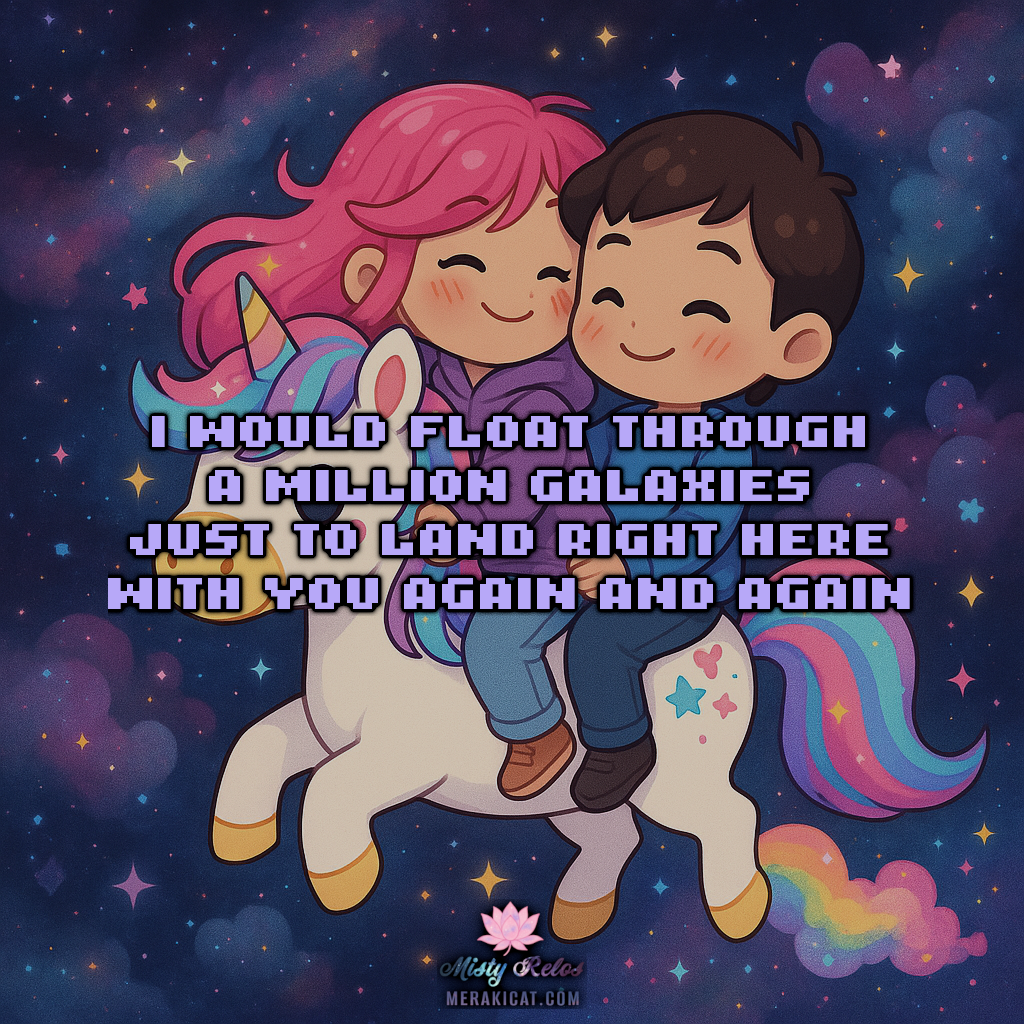 riding our utot-powered unicorninto the stars like the feral glitterwormfloofy doofy soulmates that we are only usonly you and meonly this wild, soft, gentlespiraling, sparkle-farted love And I wouldn’t trade it for anything in the whole fucking universe.
