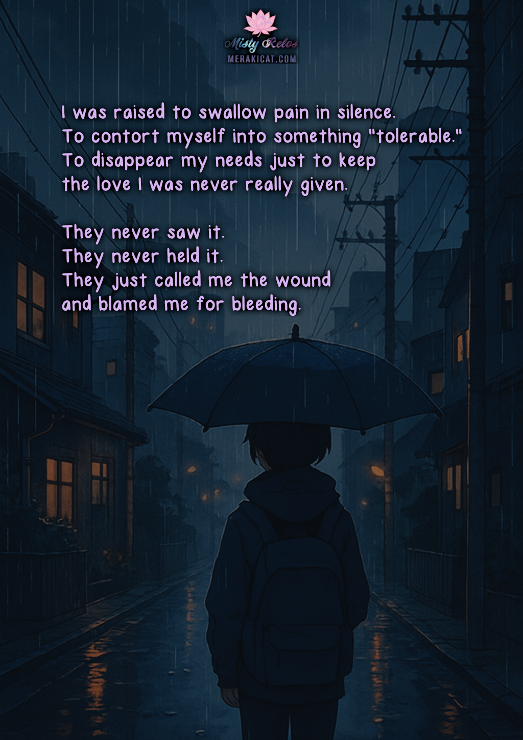 I learned how to survivewithout the people the world thinkswere supposed to catch me.I learned to build a life out of shit,with my own hands. I stay real even when the worldkeeps asking the wrong questions. They had so many chances to bewho they pretended to be for everyone else.They weren’t there for me.Not in the ways that mattered. On the outside, they look kind.They look like “good people.”They […]